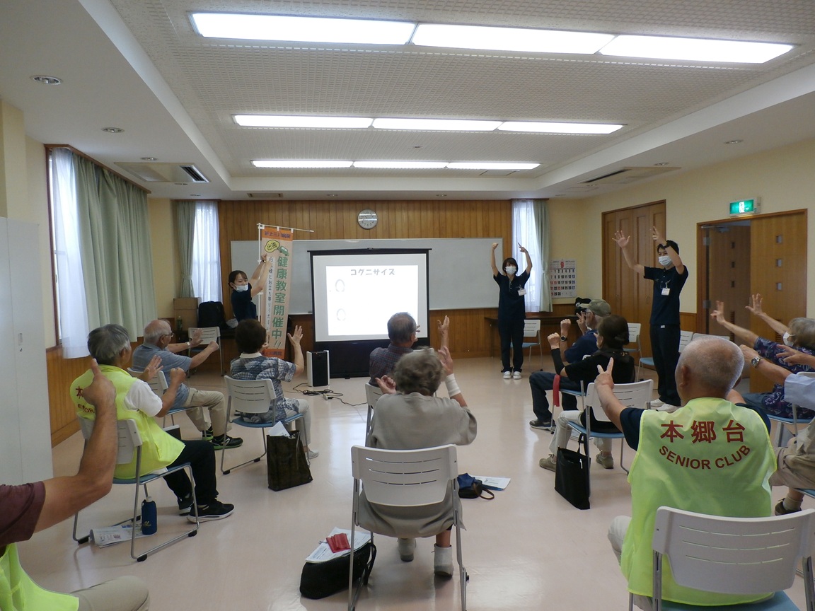 「フレイル予防」のテーマで前回お伝えした内容の復習と、フレイル予防のための体操、認知症予防のためのコグニサイズを行いました。