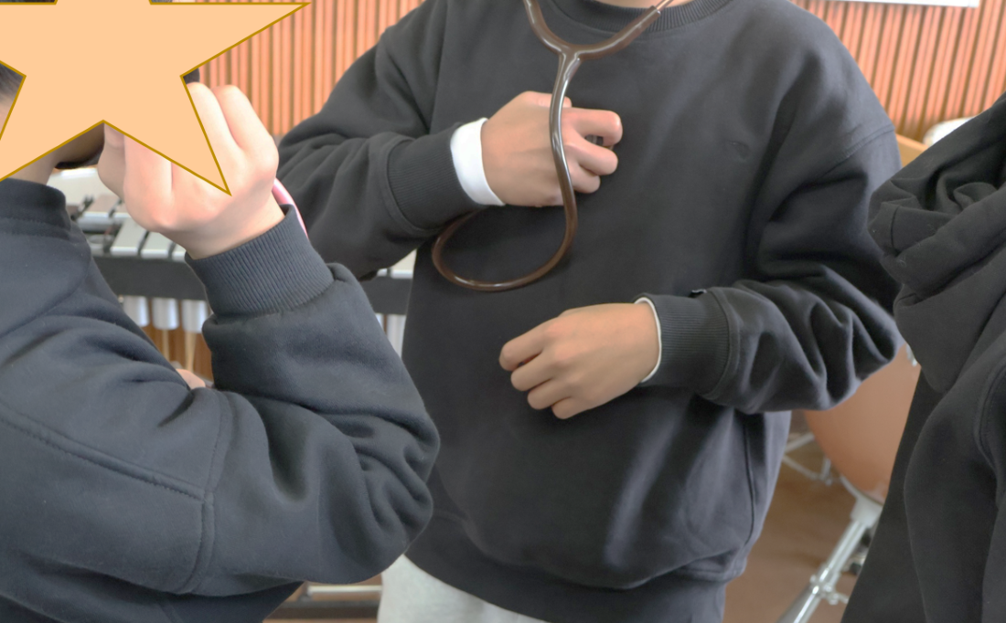 体験では、自分の心臓の音を聞いたり、心臓マッサージをしたり、老人体験をしたり、”手洗いがよくできているか”を手洗いチェッカーという機器で確認したりと、様々なことを児童のみなさんと取り組みました。